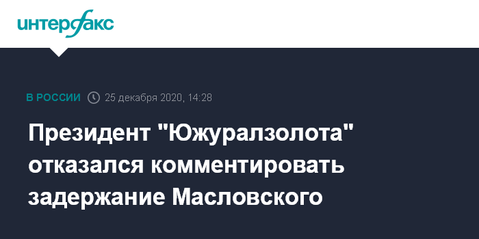 Президент "Южуралзолота" отказался комментировать задержание Масловского