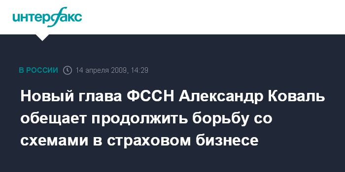 Новый глава ФССН Александр Коваль обещает продолжить борьбу со схемами в страховом бизнесе