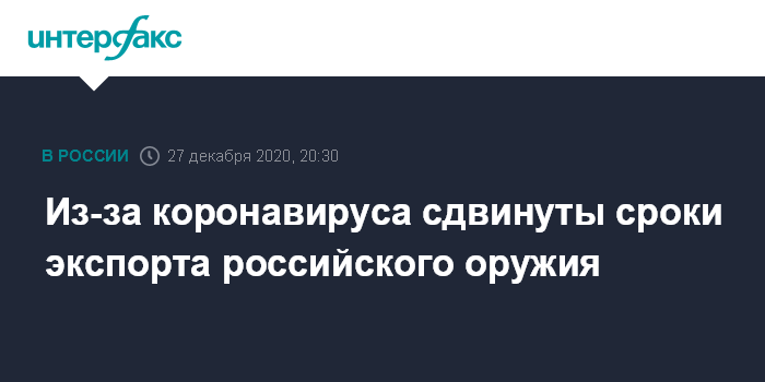 Из-за коронавируса сдвинуты сроки экспорта российского оружия