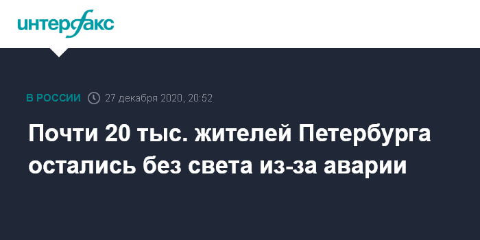 Москва. 27 декабря. INTERFAX.RU - Аварийное отключение электричества произошло в Красносельском районе Петербурга.