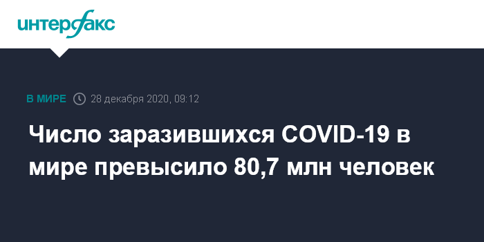 Число заразившихся COVID-19 в мире превысило 80,7 млн человек