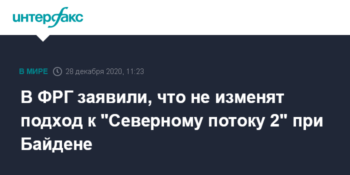 Москва. 28 декабря. INTERFAX.RU - Германия не намерена менять подход к проекту газопровода "Северный поток 2" в связи с предстоящей инаугурацией избранного президента США Джо Байдена, заявил агентству RND глава МИД ФРГ Хайко Маас.