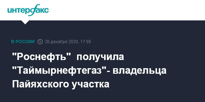 "Роснефть" получила "Таймырнефтегаз"- владельца Пайяхского участка