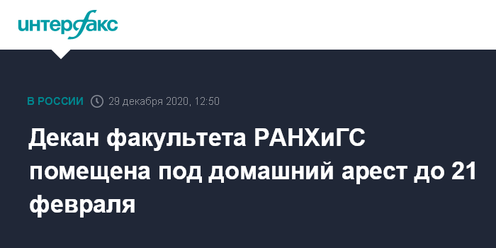 Декан факультета РАНХиГС помещена под домашний арест до 21 февраля