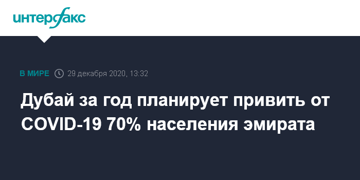 Дубай за год планирует привить от COVID-19 70% населения эмирата