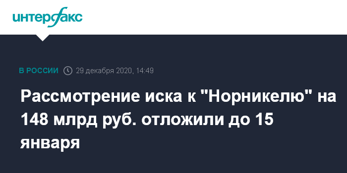 Рассмотрение иска к "Норникелю" на 148 млрд руб. отложили до 15 января
