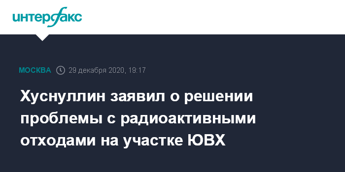 Хуснуллин заявил о решении проблемы с радиоактивными отходами на участке ЮВХ