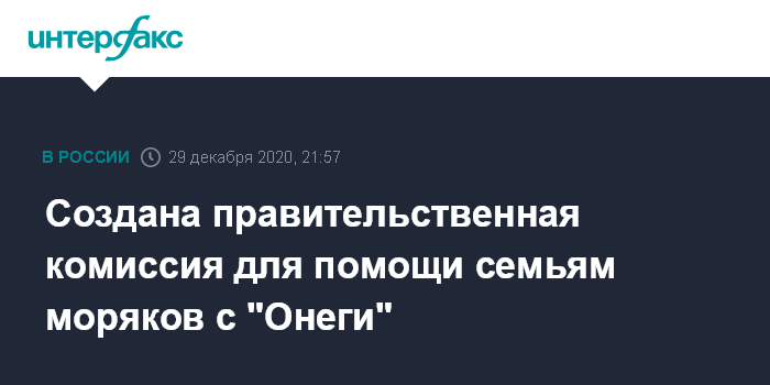 Создана правительственная комиссия для помощи семьям моряков с "Онеги"
