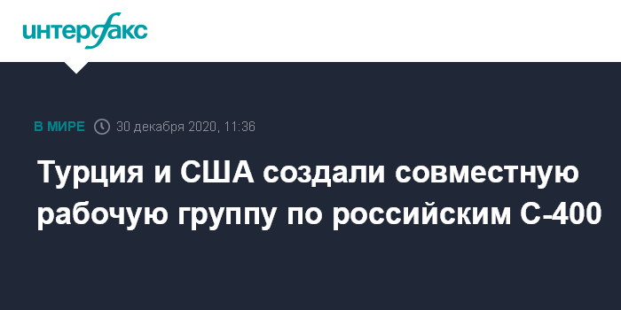Москва. 30 декабря. INTERFAX.RU - Турция и США создали совместную рабочую группу по урегулированию вопросов с приобретенными Анкарой у России зенитными ракетными системами (ЗРС) С-400, заявил в среду глава турецкого МИД Мевлют Чавушоглу.