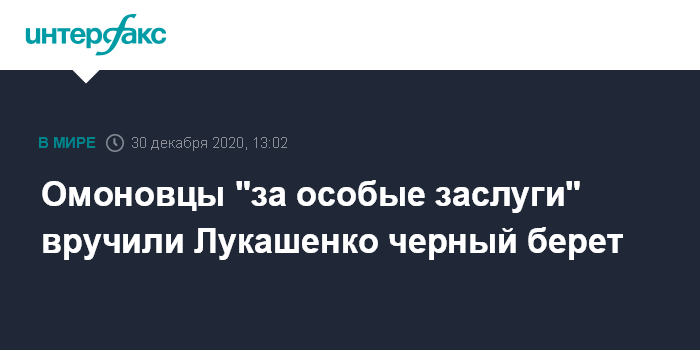Москва. 30 декабря. INTERFAX.RU - Президент Белоруссии Александр Лукашенко во время посещения отряда милиции особого назначения ГУВД минского горисполкома был удостоен черного берета, для получения которого необходимо пройти специальные испытания, сообщает госагентство БелТА в среду.