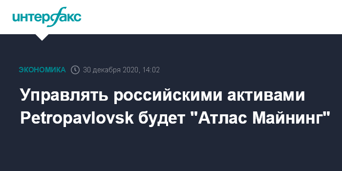 Москва. 30 декабря. INTERFAX.RU - Управлять российскими активами Petropavlovsk будет новая компания - "Атлас Майнинг", сообщил "Интерфаксу" источник в золотодобытчике.