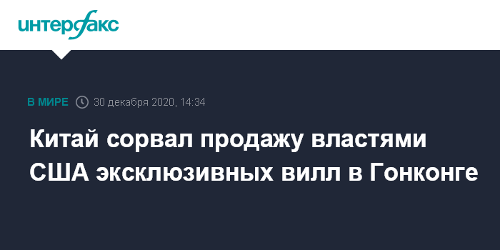 Москва. 30 декабря. INTERFAX.RU - Власти Китая сорвали планы США по продаже эксклюзивного жилого комплекса в Гонконге, заявив, что подобная сделка требует их одобрения.