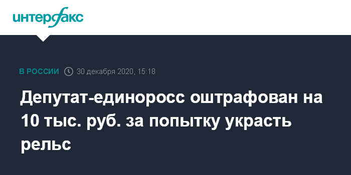 Депутат-единоросс оштрафован на 10 тыс. руб. за попытку украсть рельс
