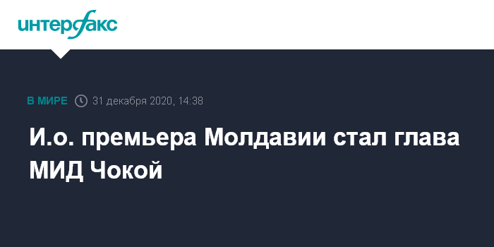Москва. 31 декабря. INTERFAX.RU - Министр иностранных дел и европейской интеграции Молдавии Аурелиу Чокой назначен и.о. премьер-министра страны.