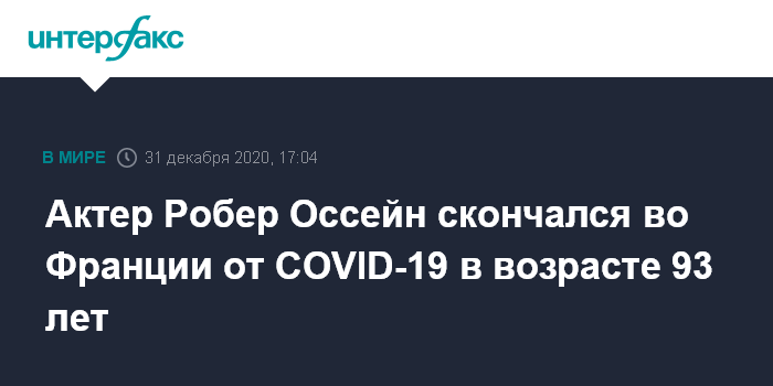 Актер Робер Оссейн скончался во Франции от COVID-19 в возрасте 93 лет
