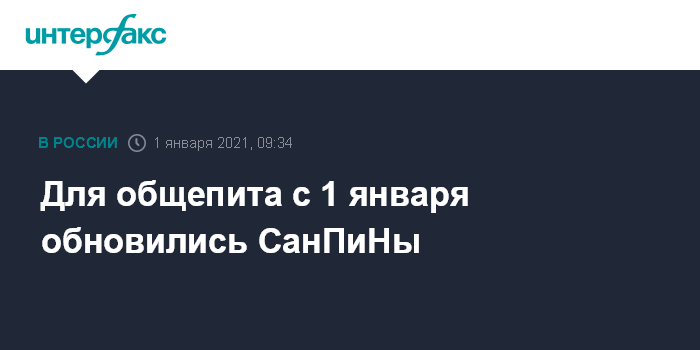 Москва. 1 января. INTERFAX.RU - Новые санитарно-эпидемиологические правила и нормы (СанПиН) в отношении организаций общественного питания вводятся с 1 января 2021 года и будут действовать до 2027 года, отменяя ранее действующие санитарно-эпидемиологические правила и нормы.