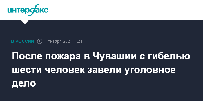 Москва. 1 января. INTERFAX.RU - Следственные органы возбудили уголовное дело по факту пожара в Урмарском районе Чувашии, в результате которого погибли шесть человек, сообщает в пятницу республиканское СУ СКР.