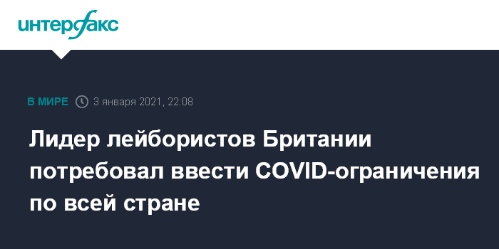 Лидер лейбористов Британии потребовал ввести COVID-ограничения по всей стране