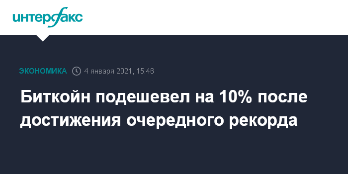 Москва. 4 января. INTERFAX.RU - Курс биткойна ускорил снижение на торгах в понедельник после достижения очередного рекорда накануне.