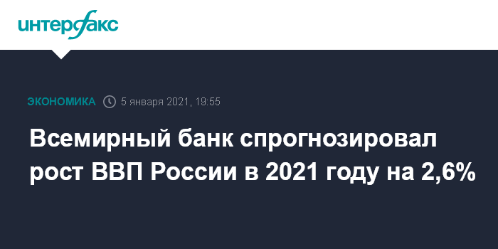 Всемирный банк спрогнозировал рост ВВП России в 2021 году на 2,6%