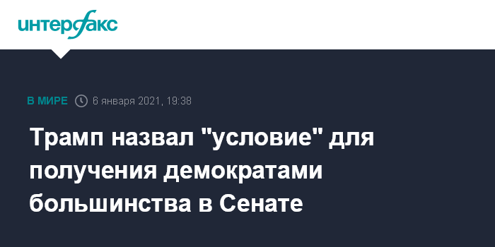 Москва. 6 января. INTERFAX.RU - Президент США Дональд Трамп заявил, что Демократическая партия действительно может обеспечить себе большинство в Сенате, но только благодаря фальсификации результатов выборов в Джорджии.