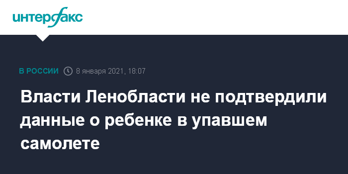 Власти Ленобласти не подтвердили данные о ребенке в упавшем самолете