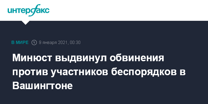 Минюст выдвинул обвинения против участников беспорядков в Вашингтоне