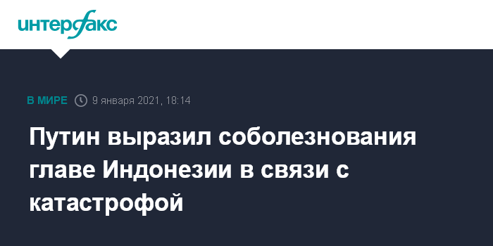 Москва. 9 января. INTERFAX.RU - Президент России Владимир Путин направил своему индонезийскому коллеге Джоко Видодо телеграмму соболезнования в связи с авиакатастрофой.