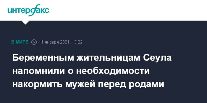 Беременным жительницам Сеула напомнили о необходимости накормить мужей перед родами