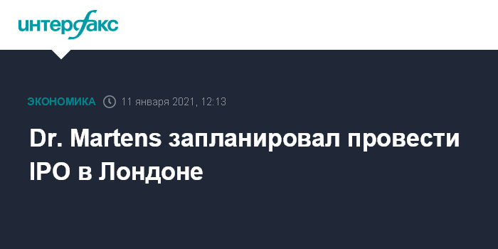 Москва. 11 января. INTERFAX.RU - Производитель обуви Dr. Martens намерен провести первичное публичное размещение акций (IPO) на Лондонской фондовой бирже (LSE).