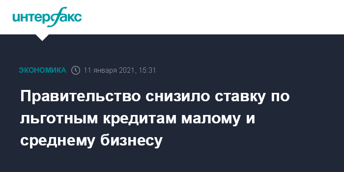 Москва. 11 января. INTERFAX.RU - Правительство РФ приняло решение о снижении максимальной ставки по льготным кредитам малому и среднему бизнесу (МСБ) и самозанятым гражданам, сообщил премьер-министр РФ Михаил Мишустин в ходе совещания с вице-премьерами.