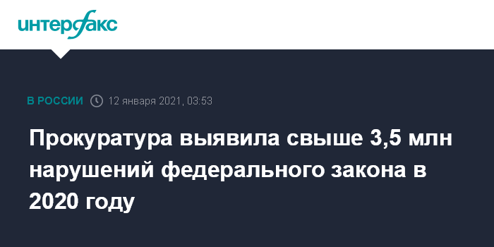 Прокуратура выявила свыше 3,5 млн нарушений федерального закона в 2020 году