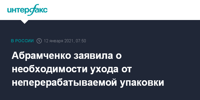 Москва. 12 января. INTERFAX.RU - России нужно перейти на экологичную упаковку и постепенно отказаться от определенных ее видов, которые не поддаются переработке, заявила вице-премьер РФ Виктория Абрамченко в интервью изданию "Коммерсантъ".