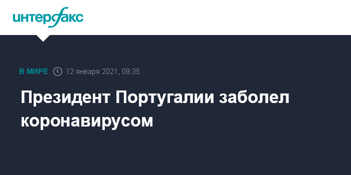 Москва. 12 января. INTERFAX.RU - Президент Португалии Марселу Ребелу ди Соуза после контакта с зараженным коронавирусом сам заболел COVID-19, говорится в заявлении, распространенном на его сайте.