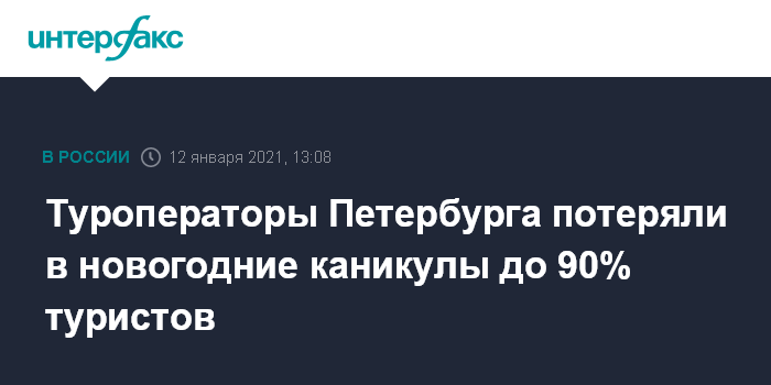 Москва. 12 января. INTERFAX.RU - Туроператоры Санкт-Петербурга в новогодние каникулы приняли лишь 10-15% от прошлогоднего потока туристов, до 90% клиентов аннулировали туры из-за введенных властями города ограничений, сообщила порталу "Интерфакс-Туризм" во вторник пресс-секретарь Российского союза туриндустрии (РСТ) Ирина Тюрина.