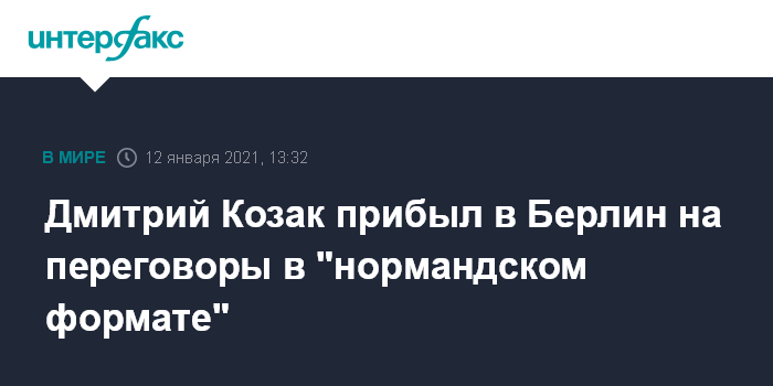 Москва. 12 января. INTERFAX.RU - Замглавы администрации президента России Дмитрий Козак прилетел в Берлин для участия во встрече политических советников "нормандского формата", сообщил представитель российского посольства в Германии.