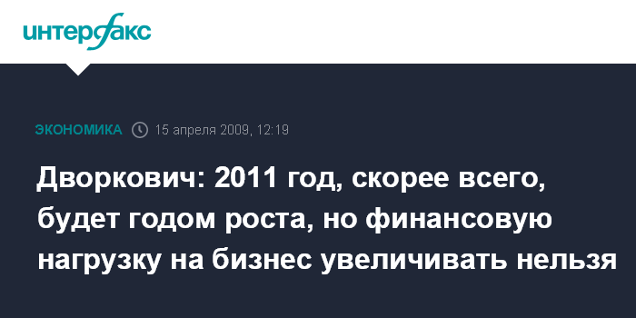 Дворкович: 2011 год, скорее всего, будет годом роста, но финансовую нагрузку на бизнес увеличивать нельзя