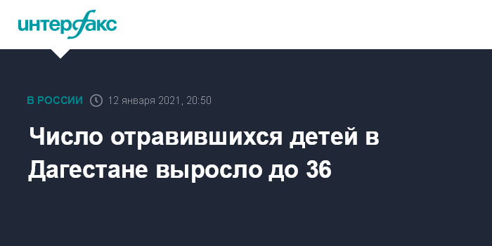 Москва. 12 января. INTERFAX.RU - Число госпитализированных детей с признаками отравления в дагестанском Буйнакске выросло до 36, сообщили "Интерфаксу" в детской городской больнице.