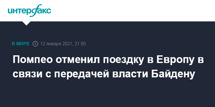 Агентство Bloomberg в свою очередь сообщало, что Помпео планировал в среду посетить Бельгию. Данный визит, вероятно, стал бы последней поездкой Помпео в качестве главы Госдепа США.