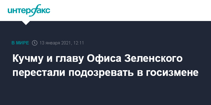 Москва. 13 января. INTERFAX.RU - Главное следственное управление Службы безопасности Украины закрыло уголовное производство по факту возможного совершения экс-главой украинской делегации в Трехсторонней контактной группе на переговорах в Минске, вторым президентом Украины Леонидом Кучмой и главой Офиса президента Андреем Ермаком государственной измены.