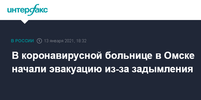 Москва. 13 января. INTERFAX.RU - В Омске произошло задымление на Кордной улице в медсанчасти №9, которую переоборудовали под коронавирусный госпиталь, сообщил "Интерфаксу" информированный источник.
