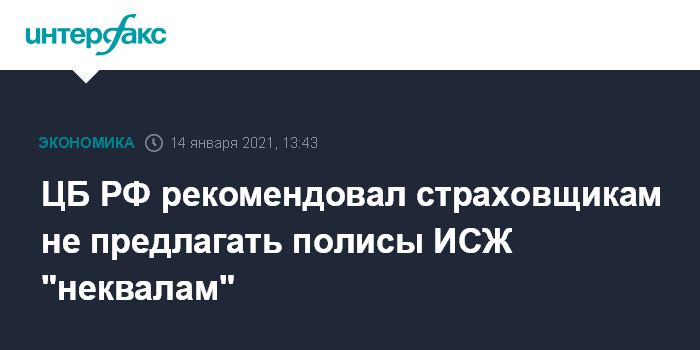 ЦБ РФ рекомендовал страховщикам не предлагать полисы ИСЖ "неквалам"