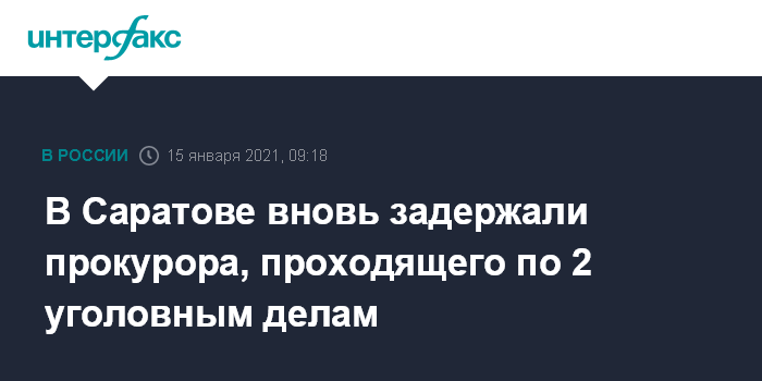 Как сообщалось, следствие возбудило два уголовных дела в отношении прокурора по ч.6 ст.290 УК РФ (получение должностным лицом взятки в виде денег в особо крупном размере), одно было возбуждено 31 декабря 2020 года, второе - 13 января.