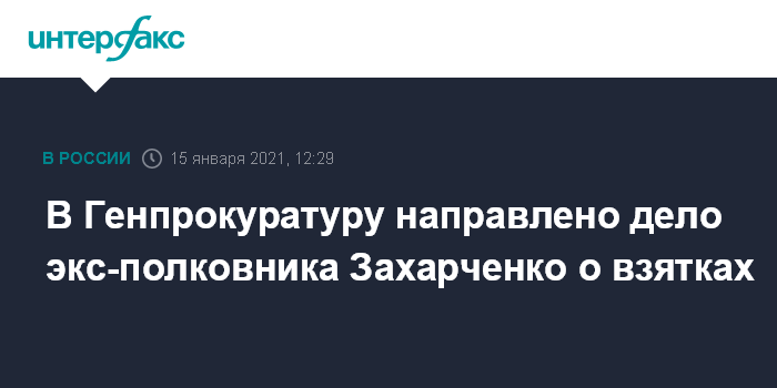 В Генпрокуратуру направлено дело экс-полковника Захарченко о взятках