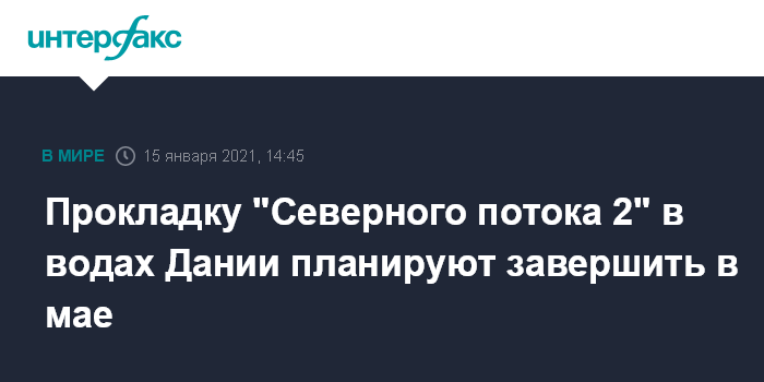 Москва. 15 января. INTERFAX.RU - Работы по прокладке "Северного потока 2" в датских водах планируется завершить в мае, следует из расписания строительства газопровода, поступившего в распоряжение "Интерфакса".