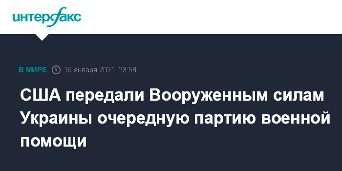 Москва. 15 января. INTERFAX.RU - Соединенные Штаты Америки передали украинским Вооруженным силам очередную партию военной помощи в рамках инициативы содействия безопасности страны. Украинская армия получила бронемобили и лодки, сообщает посольство США в Киеве на своей странице в твиттере.