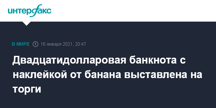 Москва. 16 января. INTERFAX.RU - Heritage Auctions выставил на торги уникальную 20-долларовую купюру с наклейкой от банана.