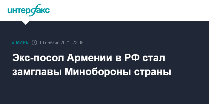 Экс-посол Армении в РФ стал замглавы Минобороны страны