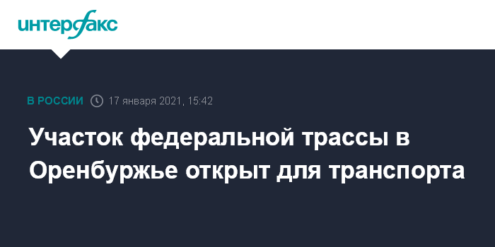 Москва. 17 января. INTERFAX.RU - Участок федеральной трассы М-5 "Урал" в Оренбургской области, который был перекрыт из-за метели, вновь открыт для движения всех видов транспорта, сообщает ФКУ Упрдор "Приуралье".