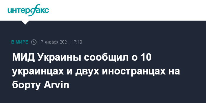 МИД Украины сообщил о 10 украинцах и двух иностранцах на борту Arvin